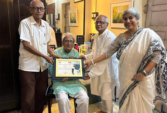 বর্ষীয়ান অভিনেতা নির্মল কুমার চক্রবর্তীকে তপন সিংহ জন্মশতবার্ষিকী স্মারক দিয়ে সম্মান জানাল ডবলুবিএফজেএ। অবশেষে ১ নভেম্বর সন্ধ্যায়, অভিনেতা নির্মল কুমারের হাতে তপন সিংহ জন্মশতবার্ষিকী স্মারক তুলে দেওয়া হলো তাঁর বাড়িতে গিয়ে! ২০২৫ সালে সিদ্ধান্ত হয়েছিল যে তপন সিংহের দীর্ঘদিনের সহকর্মী, সুহৃদ এবং তাঁর অন্তত ১৪টি ছবির অন্যতম বর্ষীয়ান (বয়স ৯৭) অভিনেতা নির্মলকুমার চক্রবর্তীকে সম্মানিত করবে ওয়েস্ট বেঙ্গল ফিল্ম জার্নালিস্টস এসোসিয়েশনের সদস্যরা (ডব্লিউবিএফজেএ)।