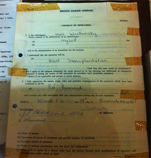 হৃদপিন্ড প্রতিস্থাপনের জন্য ওয়াশানস্কির স্বাক্ষরিত মূল সম্মতিপত্র